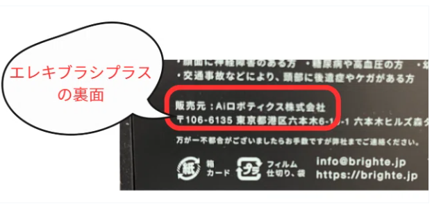 例えば、Brighteエレキブラシの販売元である株式会社AIロボティクスであれば、東京都港区の住所が明記されています。