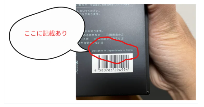 結論から申し上げますと、実際に筆者が購入したエレキブラシプラスのパッケージ裏には「Designed in Japan / Made in China」と書かれています。