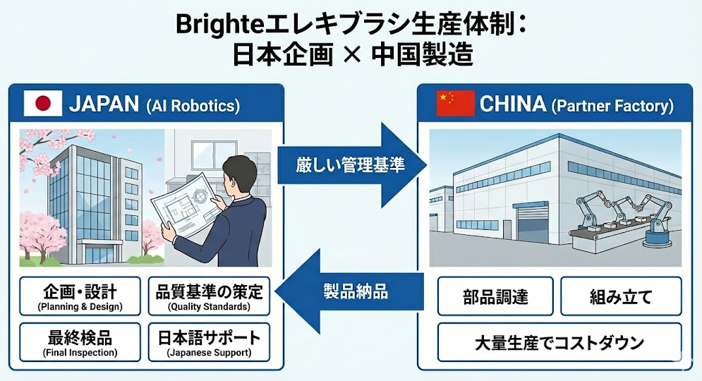 Brighteエレキブラシはどこの国の製品?販売元「AIロボティクス」と製造国の関係を徹底解説