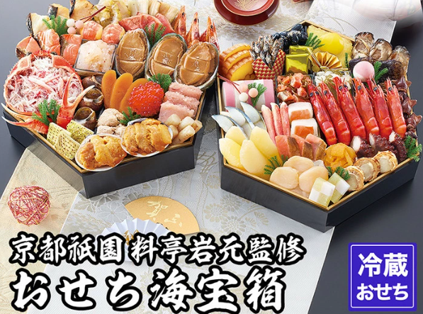- 内容例:鮑の旨煮、ずわい蟹、いくら醤油漬け、鴨ロース、京野菜の炊き合わせなど