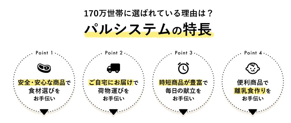 パルシステムは、子育て中の家庭向けに特化した商品やサービスを提供しています。