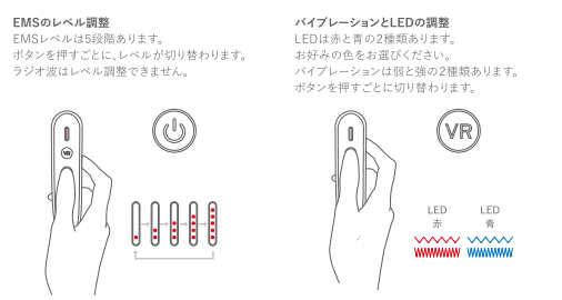 EMSやバイブレーションの出力レベルは調整可能なので、敏感肌の方でも使用できます。