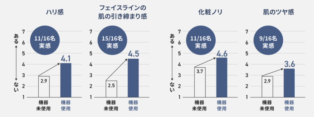 特に、RF×EMS LIFTモードの高出力ケアと、肌の角層まで届くMOISTモードの組み合わせによって、ハリ感と明るさの両方を実感する方が多いようです。週に数回の使用でも「肌が変わった」と感じる人が多く見受けられます。